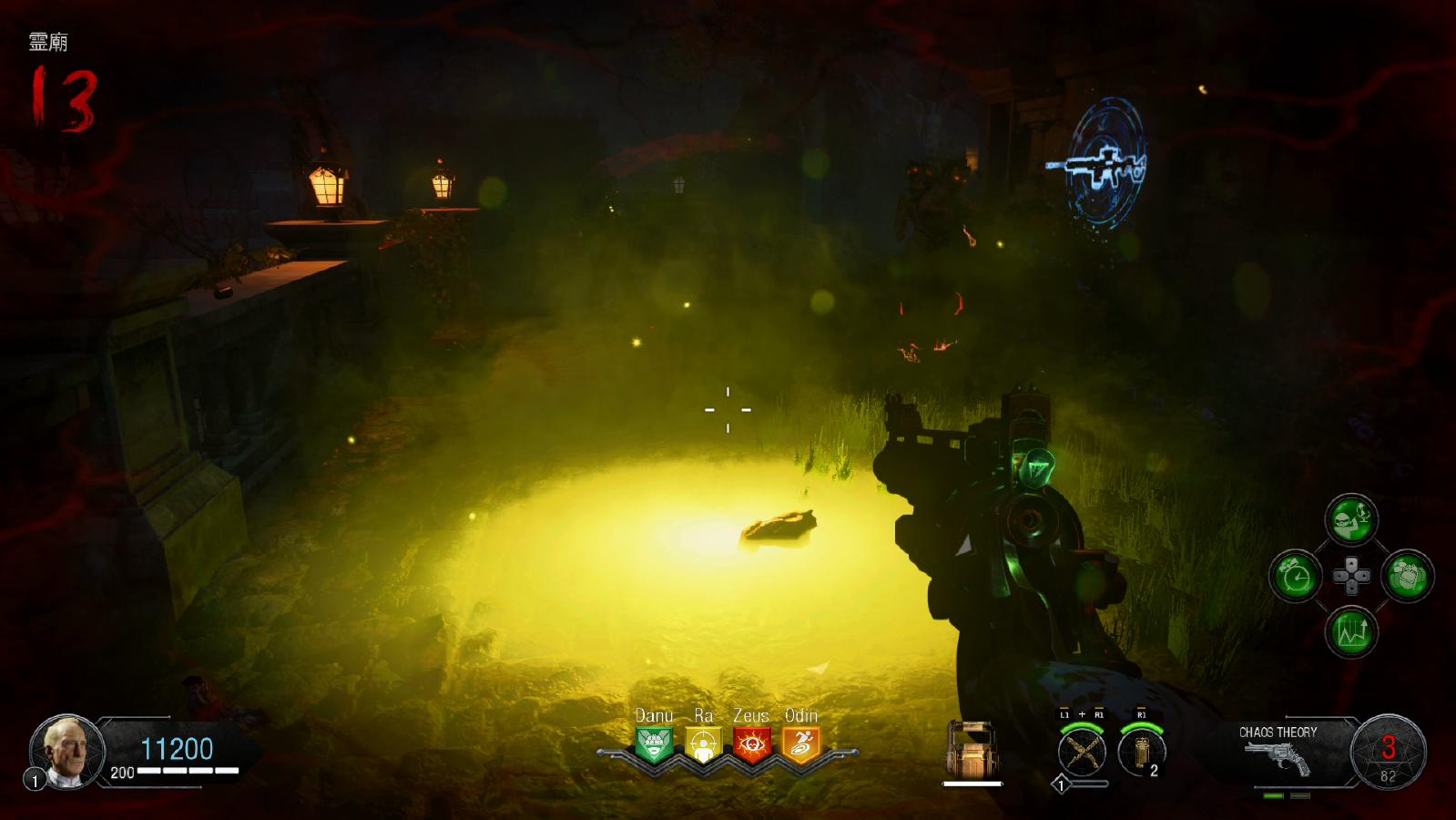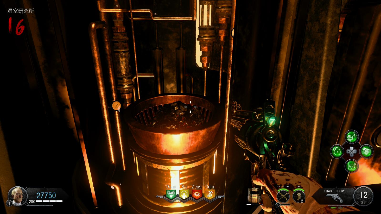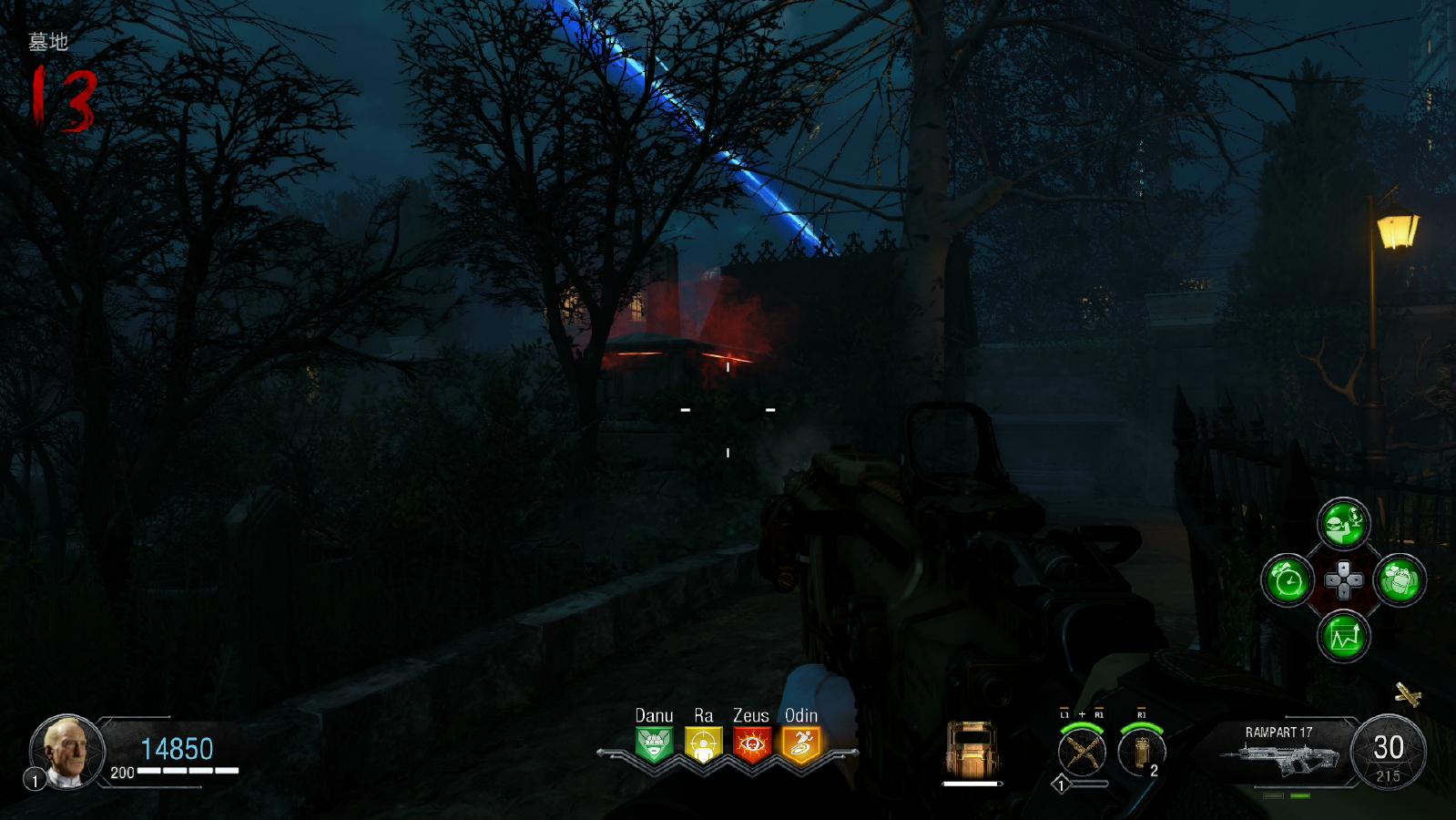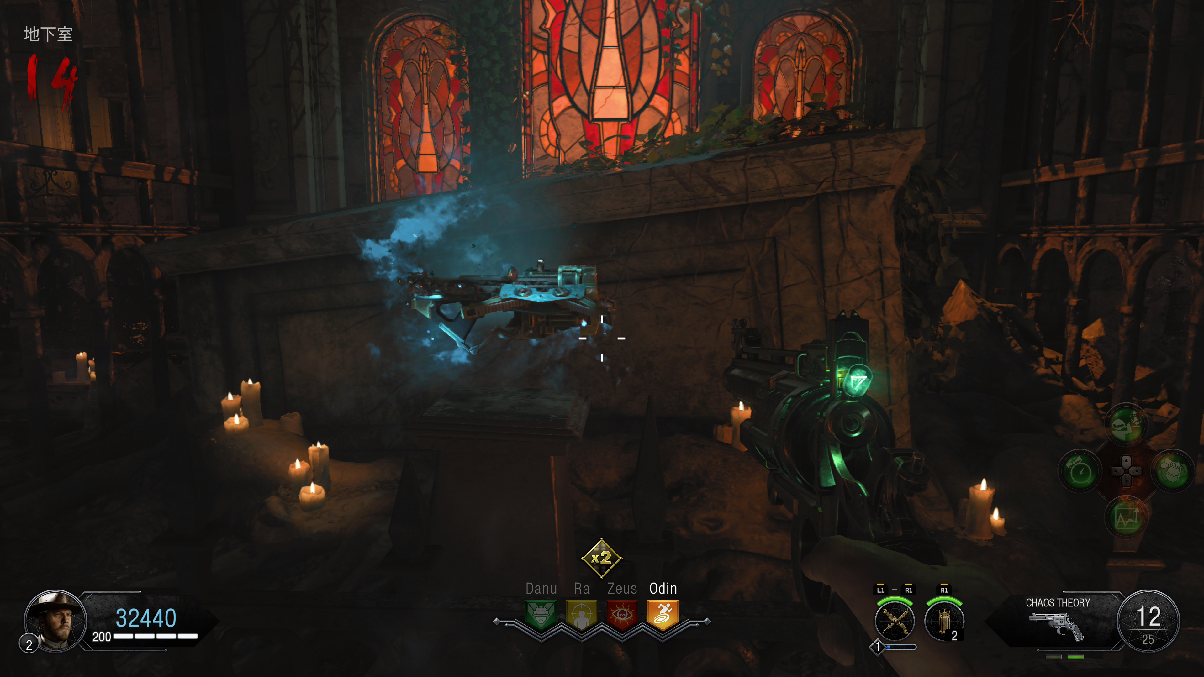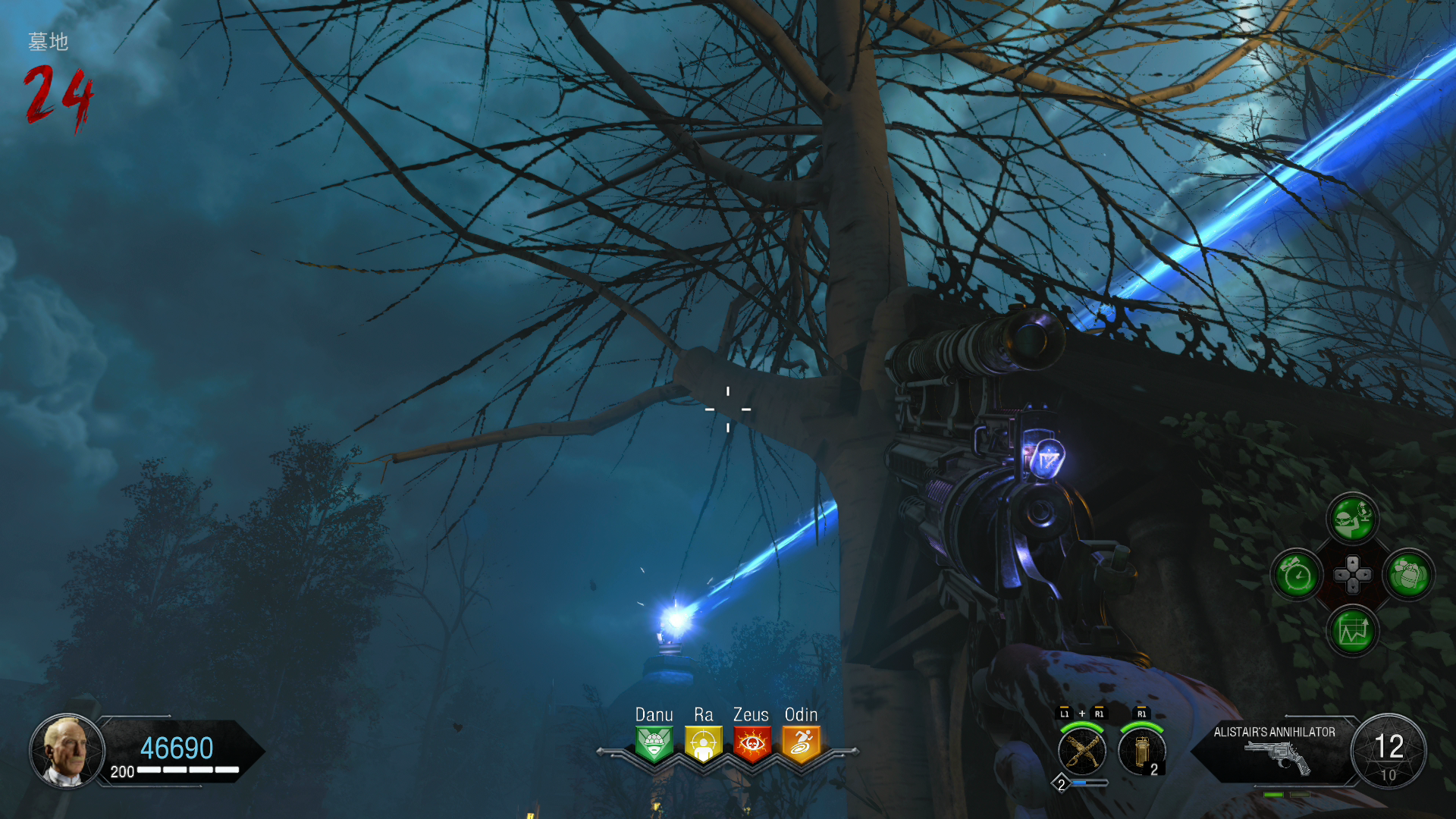 メインクエスト †パックアパンチ解放 †大階段でセンチネルの神器を使う。 その後、各部屋に石の入った壺があるので、打撃で破壊。周囲でゾンビを4キルすると石が輝くので、全て行う。候補地7か所。石は3か所 主寝室 ワインセラー(1) ワインセラー(2) 図書室 書斎 トロフィールーム 寝室廊下 石はチャージが完了すると、中を覗き込むことができる。 時計 ビリヤードルーム、メインホール、ダイニングルームに時計があるのでインタラクト。 インタラクトすると地面に紋章が現れるので、その中で一定時間待機。 完了すると音叉が出てくるので拾う。また、クリアでトロフィー「オンザクロック」入手。 PERK 表示されたPERKの像へ移動。 周辺にヴァンパイアが現れるので全員倒す。 完了すると音叉が出てくるので拾う。 人形 2階玄関ホールに人形があるのでインタラクト。幽霊が現れる。 幽霊の周囲に行くと移動するので、近づいては追いかけるを繰り返す。 最終的に墓地まで移動。 完了すると音叉を落とすので拾う。 女性の絵画 流れは人形と一緒。ゴールは温室テラス。 ロープの輪っか 流れは人形と一緒。 少女と老人 流れは人形と一緒。 悪そうな顔の女 流れは人形と一緒。 聖書 書斎の本棚。 流れは人形と一緒。 音叉を三つ入手したら、森のテラスにある玄関の黒い塊に使用。玄関が開くので奥へ進む。 一番奥にPAPがある。 途中、狼男が出現するので注意。 一番奥まで行くとPAPがある。 シルバー弾入手 †まず、6つのパーツを集める。候補地はそれぞれ三か所 ボトル 図書室からメインホールへ抜ける途中の西廊下のソファー ダイニングルームの時計の裏側にある赤いテーブル 燭台 メインホールの壁の前の壺 ビリヤードルームの床 ワインセラー右側の壁のあたり 皿 ワインセラー、テーブルの上 ワインセラー、棚の上 糞 墓地と霊廟のあたり。霊廟から屋敷側を見て正面の壁の左端 墓地と霊廟の階段の近くの木の後ろ 木炭 ビリヤード室の暖炉 メインホールの暖炉 硫黄 その後、ワインセラーの組立台で銀を作る。 ALISTER'S FOLLY †図書室に暗号を入力できるパネルがある。 マップ各地に正解の記号が点在しているので、それを確認して入力する。 青のシンボルは墓~霊廟あたり。候補地4箇所。 緑のシンボルは庭園。候補地4箇所。 黄色のシンボルは森のテラス。候補地4箇所。 赤のシンボルは、主寝室、西ギャラリー、ワインセラー、ダイニングルーム。 どれもMAP外やバリケードの外にある。 正解のコードを入力すると銃が取れるようになる。 一度入手すると、M.BOXでも出現するようになる。 バリスティックシールド †各地にある盾のパーツを組立台で組み立てる。部品はそれぞれ3箇所にランダムでスポーン シールドプレート メーター 喫煙室で組み立てる。 Chaos Theory †狼男をシルバー弾で倒すと、狼人間カオス素材を落とすので入手。 その後、温室研究所でプリママテリア装置を起動。 暫く待つと装置の側面にプリママテリアが出てくるので入手。 図書室へ行き、バリスティックシールドで左側の本棚を殴ると、隠し空間が現れて、銃のパーツが入手できる。 再度温室研究所へ向かい、ALISTER'S FOLLY を Chaos Theory 組立台でパワーアップすることができる。 R2でチャージショット発射可能。 Alistair's Annihilator †霊廟の正面、消えているランプの前あたりで、Chaos Theoryのチャージショットでヴァンパイアを倒す。黄色い何かに当ててる間にさらに竜巻を当てるといいのかもしれない。 そのうち、ヴァンパイアが胆汁を落とす。 何個か胆汁を拾っていると、霊廟正面の墓が赤く光る。 インタラクトすると、赤いヴァンパイアが現れるので倒す。 すると、吸血鬼カオス素材が手に入るので入手。 これを温室研究所のプリママテリアにかけるとパーツが一つ入手できる。 次に、霊廟の正面、1ラウンドごとに、ランプが一つ追加で点灯する。 これをChaos Theoryで撃つと、他のランプが点灯する。一定時間以内にランプを撃ち続けていると、3箇所目くらいで蝙蝠が空に向かって飛び立つ。それをChaos Theoryで撃ち落とすと蝙蝠カオス素材が入手できる。 これを温室研究所のプリママテリアにかけるとパーツが一つ入手できる。 最後に森で、土に埋まってキノコが生えている骨の周囲にいく。 この骨の上で、チャージショットをゾンビを直接当て、黄色い何かが発動すると、地面を掘ってパーツが出現する。三か所のうち正解は一か所。 これを入手。 三つのパーツを集めた後、温室研究所の Alistair's Annihilator組立台で、Chaos TheoryをAlistair's Annihilatorに加工できるようになる。 結晶からチャレンジを受ける †PAP解放の際にチャージした結晶を再度インタラクトすると、イラストが見える。それに対応したクエストをこなす必要がある。 騎士 †ALISTER'S ANNIHILATOR とシールド必須。 図書室のファイアゲートの罠を作成する。 ファイアゲートを起動するためのアイテムはランダムで各地に散らばってる。 暖炉にランダムに決まる順番に